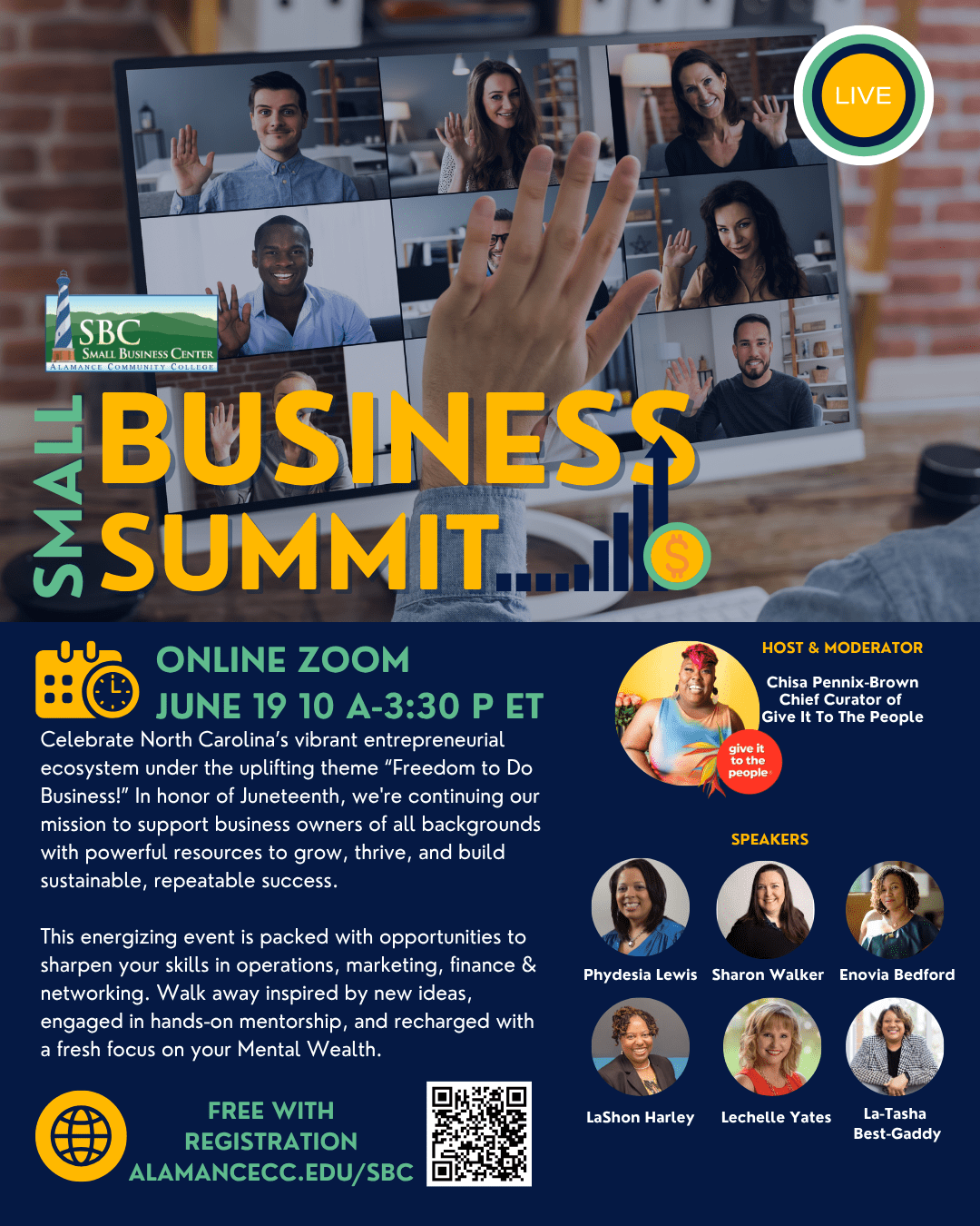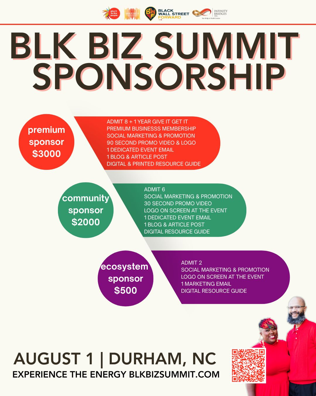 Each speaker poured into our guests with the knowledge and encouragement every woman leader deserves. It was a day full of intention, joy, and elevation. |  | If you missed our Be In The Ecosystem Virtual Meetup on Monday with La-Tasha Best Gaddy, LaShon Harley, and Eric Reese then you missed our recap of the Durham Evolution Summit and a lot of great events and programs that are happening in the Durham, NC area. WATCH NOW |  | We’re also actively seeking sponsors for the upcoming 4th Annual BLK BIZ SUMMIT! If your organization is committed to supporting Black business growth, equity, and innovation, this is the place to show up and show out. www.blkbizsummit.com |  | We have now made some adjustments to our June 19 Summit and it will now be online and accessible to everyone in NC for free!