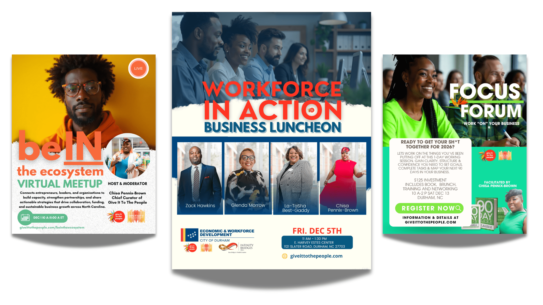 Triad....you've been asking us to come back for 2 years now and we are brining back learning in a fun, concise, and actionable way. For 2026 we present Give It To The People® Biz Fests. Each Biz Fest is focused on one area and they are built for execution. Every session is hands-on, high-impact, and focused on getting things done, right there in the room.